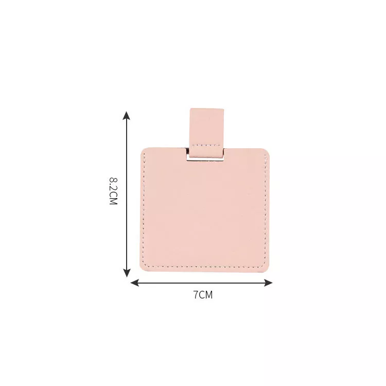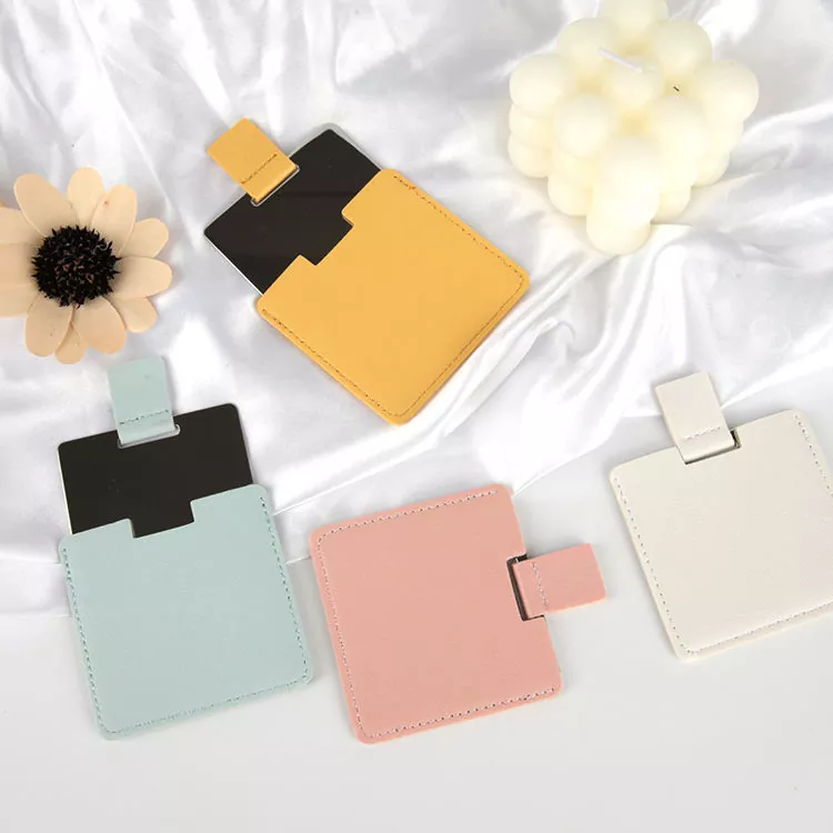 Ce miroir de poche de la taille d'une carte de crédit est doté d'un revêtement en cuir PU souple et d'une surface en acier inoxydable incassable. Son design fin et portable se glisse facilement dans un portefeuille ou un sac, idéal pour les retouches en déplacement. Le logo et les couleurs personnalisables le rendent parfait pour les cadeaux ou le branding.