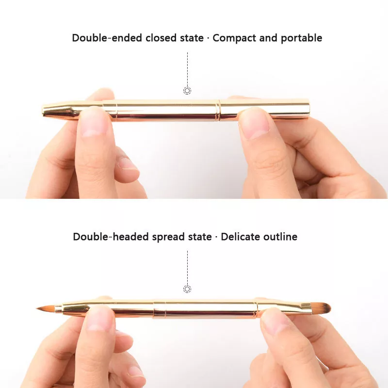 Ce pinceau de maquillage unique pour les lèvres présente une conception à double extrémité avec des poils synthétiques doux. Il est doté d'une pointe précise pour tracer le contour des lèvres et d'un pinceau plat pour remplir la couleur, avec un manche en métal élégant pour une prise en main facile et une utilisation en déplacement.