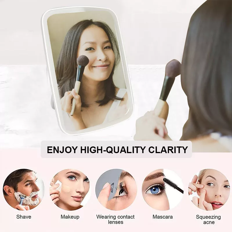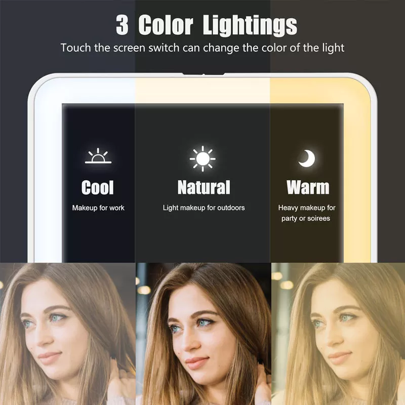 Ce miroir de maquillage à LED de table dispose de trois modes d'éclairage réglables (frais, naturel, chaud) pour s'adapter à tous les scénarios de maquillage. La lumière froide est idéale pour le maquillage professionnel, la lumière naturelle pour les looks extérieurs et la lumière chaude pour les événements en soirée. L'anneau LED doux et sans scintillement offre un rendu des couleurs fidèle à la réalité, garantissant une application précise du maquillage même dans des environnements sombres.