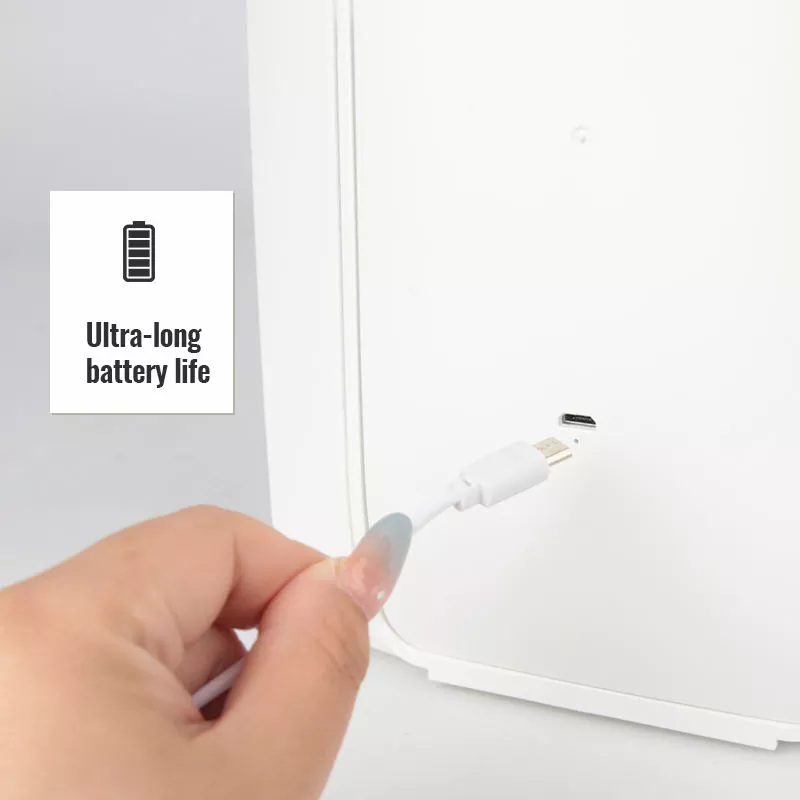 Alimenté par une batterie rechargeable intégrée, ce miroir prend en charge la charge rapide USB-C et offre une autonomie ultra longue pour une utilisation prolongée. Pas besoin de recharges fréquentes, ce qui le rend fiable aussi bien pour un usage domestique quotidien que pour les longs voyages. La conception LED économe en énergie réduit également la consommation d'énergie.